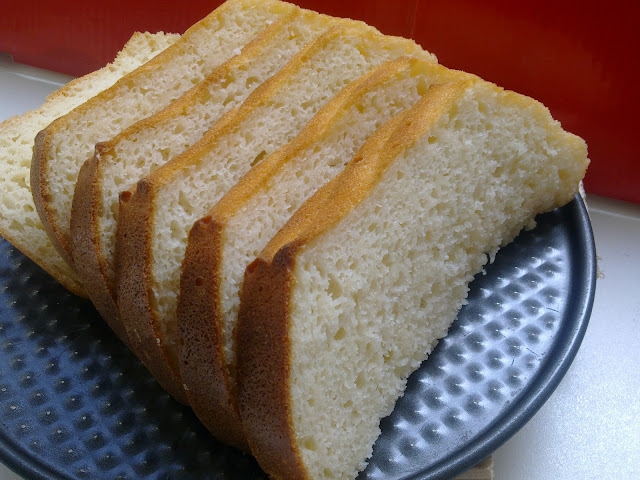I am going nuts as I could not find a pullman bread loaf pan in my area. I went to all the bakeware shops and they do not have a pan with a lid....golly!!! I tried using the normal bread pan and used something to cover the top of the pan but the bread did not turn out well. I guess that's why it needs the pullman bread pan to do the job. Over here, its better known as sandwich loaf. In french, its known as pain de mie. Oh well...here's a photo of the "failed" Pullman Bread Loaf.